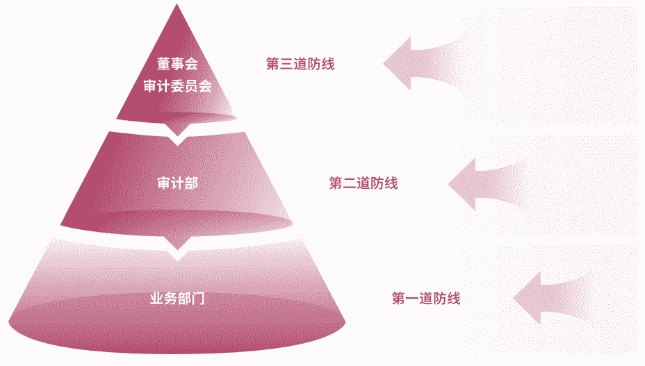 为有效防范贿赂与贪污等商业道德风险,,公司建立了由“董事会审计委员会、、审计部、、业务部门”组成的三道防线,,,全面落实公司商业道德合规工作,,,,并确保《商业道德行为准则》的有效执行。。公司审计部在董事会审计委员会的指导下定期评估、、审查公司的合规运营情况及准则的履行情况,,并对公司及所有子公司开展商业道德行为审计。。公司保证商业道德行为准则审计工作每三年覆盖公司及其所有控股子公司的全部业务范围。。。。