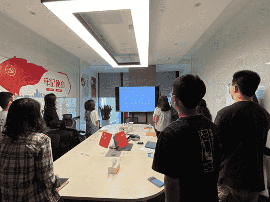 而后,,,,全体党员一起重新学习了解了目前的入党流程要求,,,,各支部也将在后续工作中进一步发挥支部职能,,做好发展党员工作。。最后,,,,全体党员面向党旗,,,,重温入党誓词。。。