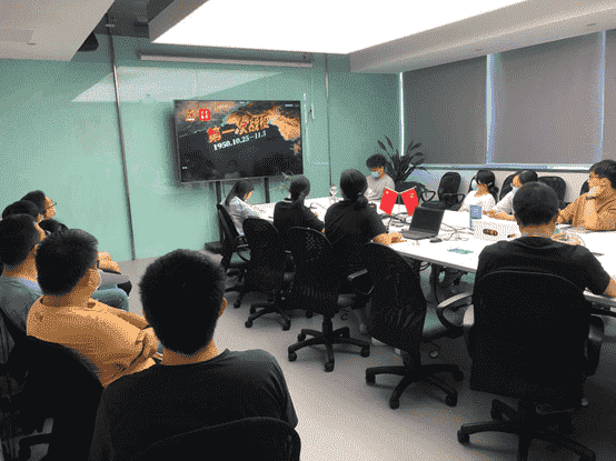 会议首先组织学习了习近平《在纪念中国人民志愿军抗美援朝出国作战70周年大会上的讲话》精神。。。会前所有党员已经通过党建e家系统进行讲话内容的文本学习,,,,会上大家一起观看了大会现场报道,,,并通过视频《200秒回顾抗美援朝战争的五次战役(来源:::央视军事)》了解抗美援朝战役,,,,通过视频和文本相结合,,,历史史实和讲话内容相结合,,,,进一步加深印象,,,,提升学习效果。。。